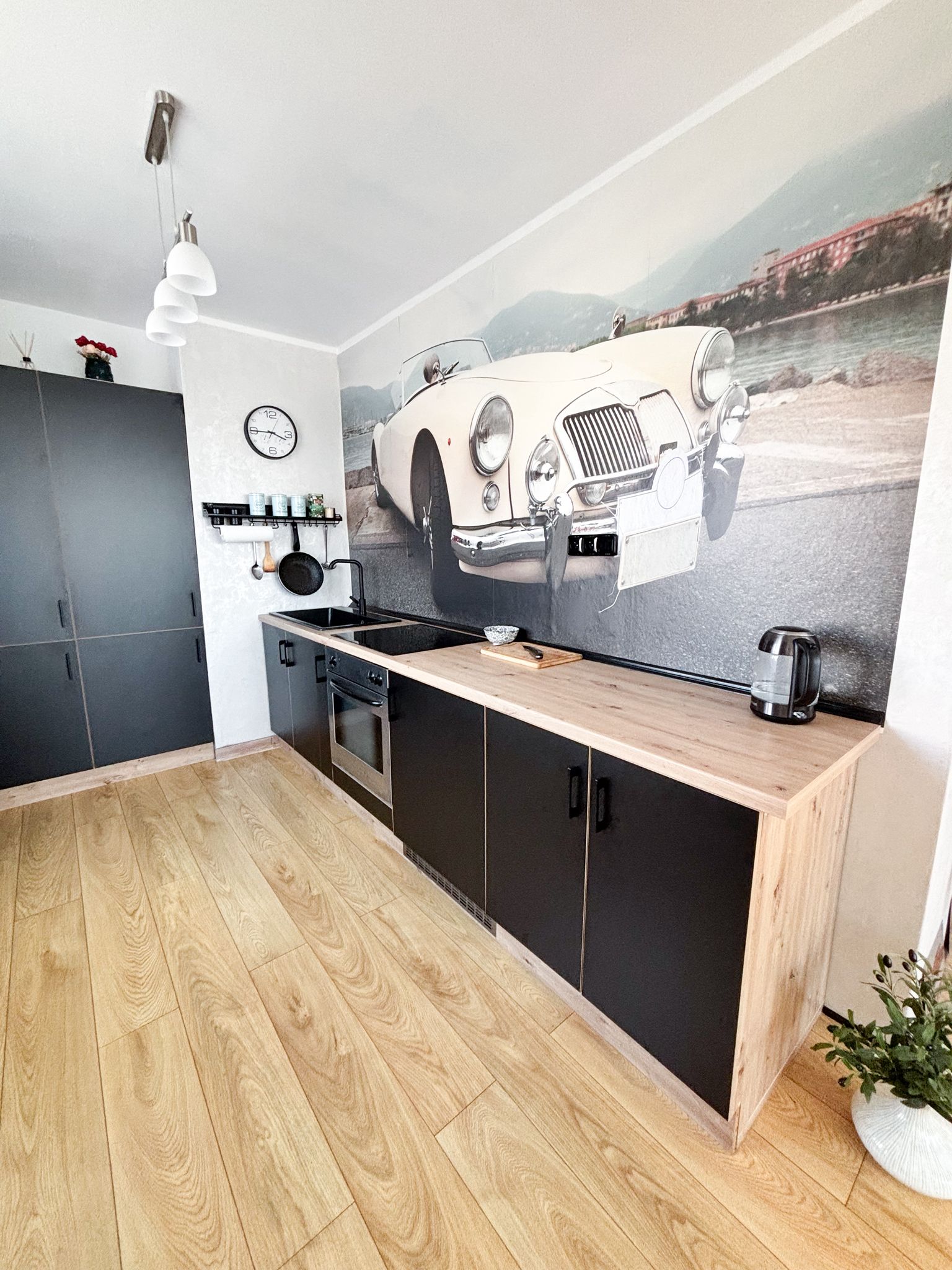 štýlovú novú kuchynskú linku vrátane sporáka a varnej dosky